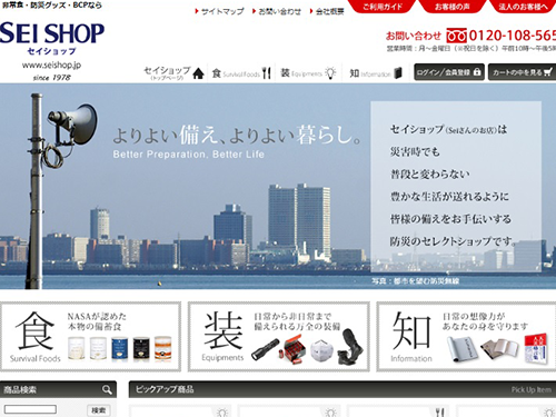 - 【ECショッパーズファイル】File.271 〈防災用品を展開〉SEI SHOP(セイショップ)/防災用品を実店舗とも連動 ('15/04/29)
