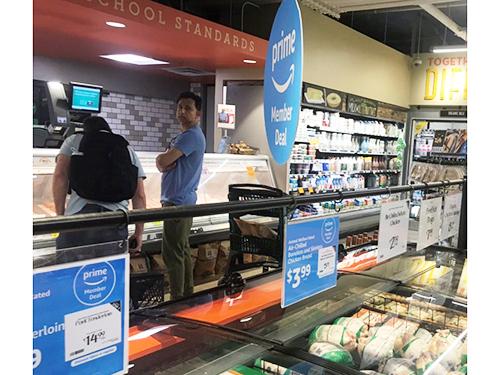 最後に、アマゾンが買収した「ホールフーズ」にも行きましたが、店内入口、目立つ場所、レジに「アマゾンプライム会員特典」の露出が確実に増えていました。「ホールフーズはアマゾンのお店」という雰囲気となり、リアル売り場の取り込み、客層の拡大、膨大なデータの収集などが進んでいると実感できました。巨大ネット企業のポイントを含めてリアルへの浸透も進んでいくことでしょう。