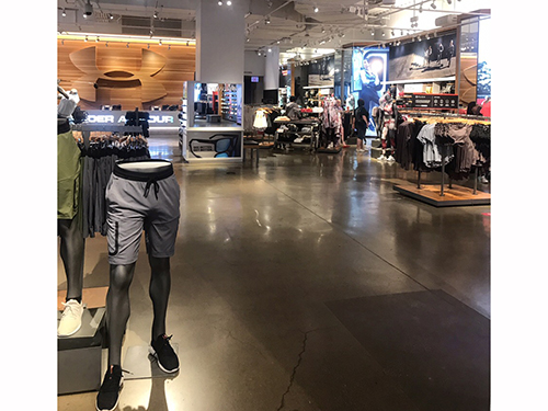 同時に気になったのが、毎年視察しているスポーツブランド「アンダーアーマー旗艦店」の変化です。店内の体験コーナーも撤去されていて、無駄と思われる空間が広がり、全体に勢いがなくなっていました。