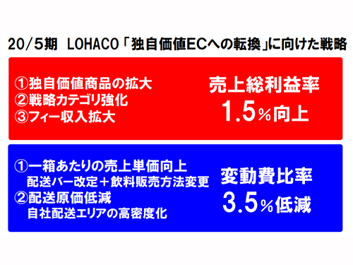 アスクルが運営する日用品のECサイト「ロハコ」の19年5月期売上高は、前期比23.1%増の513億9500万円だった。20年5月期は、「独自価値ECへの転換に注力する」(BtoCカンパニー吉岡晃COO)と言う。独自商品の展開と自社配送比率の増加により、さらに収益を拡大する計画だ。