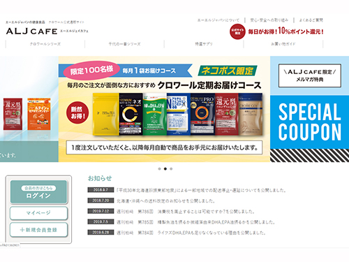 健康食品の製造・卸・販売を手掛けるエーエルジャパン(本社京都府、柏崎貴之代表)は、健康食品を販売するECサイト「ALJ CAFÉ(エーエルジェイカフェ)」を運営している。全社売り上げの8割以上を占めるのは抗酸化素材を配合した「クロワールシリーズ」。ECでは定期購入コースを設け、数々の特典を付与。定期購入者の増加を図っている。