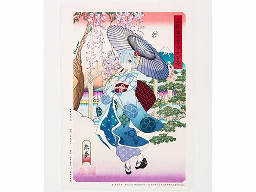 昨年には、アニメ「Re―ゼロから始める異世界生活」に出てくる人気キャラクター「レム」の浮世絵木版画を企画=写真。プロの彫師、摺師など職人が一枚ずつ手作業で制作した。「アニメの世界観の再現にこだわって企画した。