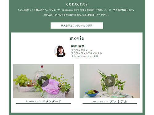 ECサイト「hanaike(はないけ)」は、季節の花をセットで配送するオンラインショップ。届いた花で生け花を楽しめるよう花材を選定し、初心者向けにレクチャー動画や花の解説、生け方の見本といったコンテンツもウェブ上で提供する。