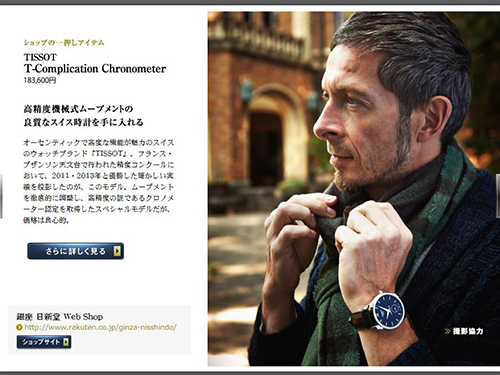 銀座の中央通りに本店を構える老舗腕時計店・銀座 日新堂(本社東京都、佐川義孝社長)は10年、楽天に出店し、ECに参入した。当初は楽天内での認知度が低く、EC売り上げをなかなか伸ばすことができなかった。EC支援を行うブランジスタ(本社東京都、岩本恵了社長)が楽天とともに発行する男性向けライフスタイルマガジン「GOODA(グーダ)」に出稿したところ、アクセス数が約1・5倍に伸び、転換率は以前の約2倍になったという。