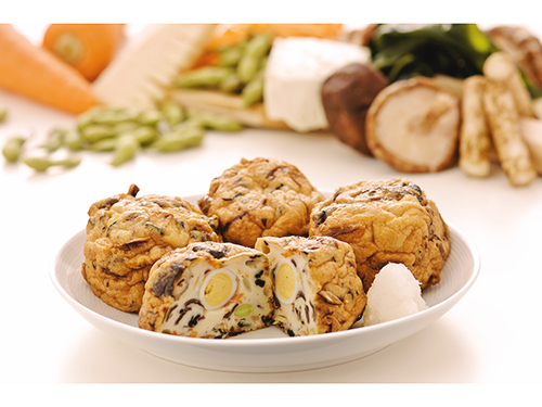 「『ひりょうず』はがんもどきのことで、漢字で書くと飛龍頭。伊勢の松尾観音寺の観音祭で販売したのが始まりです。松尾観音寺は龍神伝説の残る寺です。開運の龍にあやかって、真ん中にうずらの卵を入れ、半分に切ります。うずらが半分になり、龍眼をイメージしています。海の幸であるすり身に豆腐を加え、山の幸や野菜をふんだんに練り込んだヘルシーさが人気の理由の一つです」