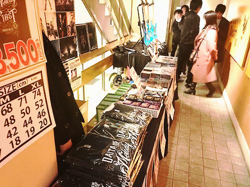 ライブが始まる数時間前、同社の物販担当者らが物販ブースを設営し、準備が始まった。新作CDの「Melodicfall(メロディックフォール)」(税抜価格3000円)を中心にTシャツ、書籍、DVDなど計20品目を販売していく。
