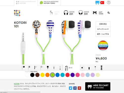 AV機器メーカーのフォスター電機は、イヤホンとヘッドホンのデザインをサイト内でカスタムできる直販サイト「kotori(コトリ)」を09年に開設した。サイト名は「個性」「音」「オリジナル」の3つの言葉を組み合わせ、利用者がデザインする楽しみを訴求している。