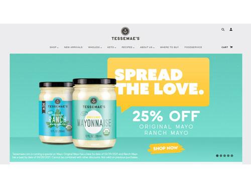 「TESSEMAE’S(テッセマエ)」は、オーガニックのドレッシングと調味料を専門に販売しているECサイト。サイトデザインは、パステルカラーとポップなデザインで統一されている。
