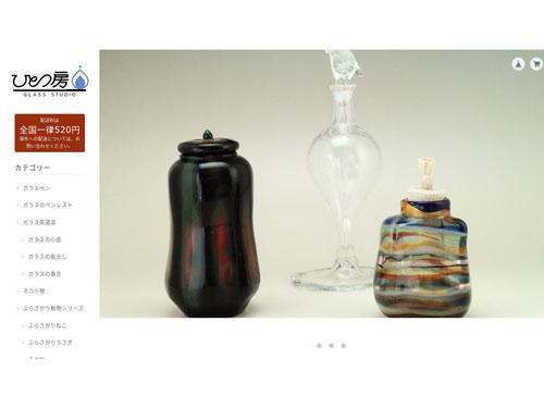 作品の画像を大きく配置した「ガラススタジオひとつ房」のトップページ