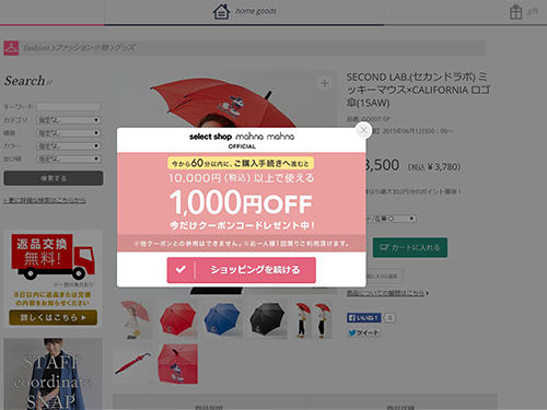 - 【EC向けサービス事例】第55回 クーポン配信システム「ゼンクラーク/ 導入サイト「セレクトショップマナマナ」/ 新規顧客の購入単価が約2倍に('15/07/22)