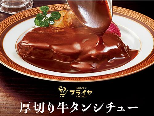 1933年に創業者の河内伊三郎氏が開発した「ドビソース」(デミグラスソース)で、厚切りの牛タンを煮込んだ「タンシチュー」。この味を求めて通い続ける人も多い。