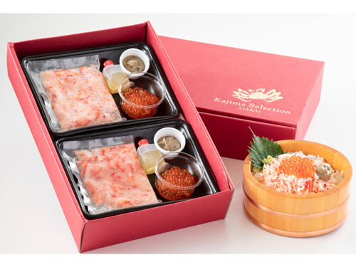 「どうにかしなければと考え、自宅で揚げなければならなかった『ずわいがにたっぷりコロッケ』を、工場で揚げて急速冷凍し、温めるだけで食べられるよう商品化しました。また、飲食店で人気の海鮮丼を『おうちでかじま丼セット』として商品化。解凍するだけで手軽に食べられ、おうちでちょっとしたご褒美の時間をお届けできたらと考えました」