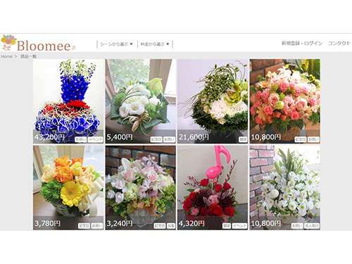 インターネットメディアの運営などを手がけるCrunch Style(クランチスタイル、本社東京都、武井亮太社長)は今年1月、花のECサイト「Bloomee(ブルーミー)」=写真=を立ち上げた。ブルーミーは、全国の花屋から商品を集約したソーシャルECサイトだ。