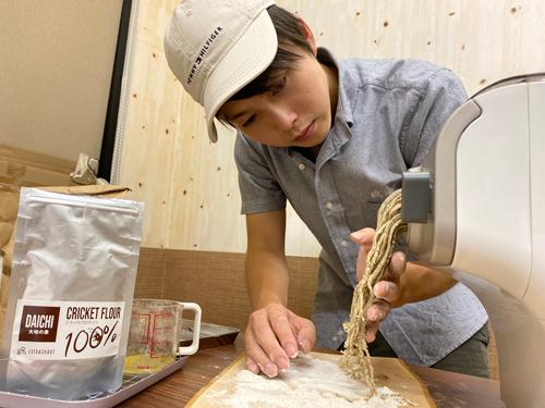 ECで昆虫食の販売などを行うFUTURENAUT(フューチャーノート、本社群馬県)の櫻井蓮CEOの趣味は、実益も兼ねた、昆虫食のレシピ開発だという。「自分で触って試してみることが、営業の説得力につながってくる」(櫻井CEO)と話す。コオロギパウダーをパスタに配合することを考えた際には、自宅用に製麺機を購入した。麺とコオロギパウダーの理想的な配合比率を日々試行錯誤を重ねながら、麺づくりをしていたという。