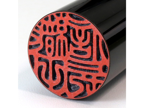 「印鑑の文字にデザインの可能性を見いだしました。当社の印鑑は上を向いた勢いのある作風で、漢字やひらがな、英語などの文字を、美しく元気よく丸い枠の中に入れるのが腕の見せどころです。彫刻は印刀という彫刻刀を使って熟練の職人が仕上げ、さらに私が補刀を行って完璧に仕上げます。一番伝えたいのは、当社の印鑑は事務用品としてのハンコではなく、デザインされた芸術品の印章であるということです」