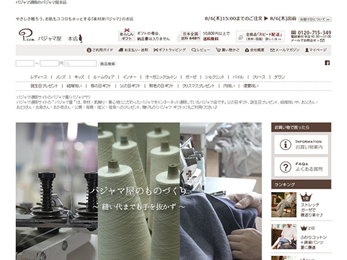 ECでは、独自開発した素材を使う高級パジャマを販売している。価格が1万円以上のものが中心で、ギフト向けに布袋を使った独自のラッピングやメッセージカードを用意する。