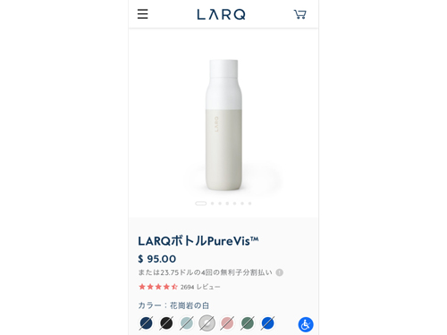 それでも「臭い」がつくのでクエン酸洗浄が欠かせない、正直面倒。と悩んでいたら「細菌やウイルスを自動で排除!」という画期的な商品が米国から上陸、その名も「LARQ(ラーク)」!、水道水を入れてあとはボタンを押せば60秒後に浄水完了。早速購入しようとサイトを訪れたところ、ホームページに車いすのアイコンが!