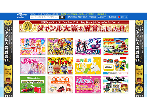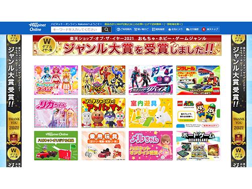 ハピネットが運営する「ハピネット・オンライン 楽天市場店」は1月26日、「楽天ショップ・オブ・ザ・イヤー(SOY)2021」において2年連続となる「おもちゃ・ホビー・ゲーム」ジャンル大賞を受賞した。分かりやすさを追求した日々のサイト改善や、メルマガやSNSなどによる顧客接点の拡充が、ユーザーの定着につながっている。