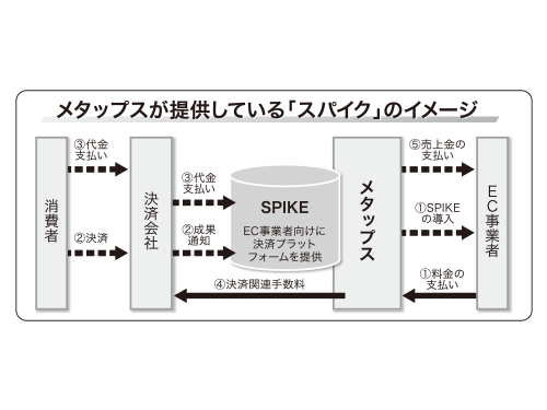 オンライン決済の分野では「ペイパル」が先駆者だ。国内では8月28日に株式上場を控えるメタップスが提供する「スパイク」、LINE(ライン)グループのウェブペイが提供する「ウェブペイ」などがある。