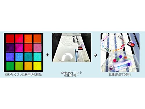 モーンガータ(本社東京都、田中寿典社長)では、廃棄する化粧品を絵具として再利用する取り組みを行っている。同社が運営するECサイト「SminkArt(スミンクアート)」では、自宅で使わなくなった、粉モノの化粧品を絵具にするキットや、化粧品を原料にした絵具を販売している。