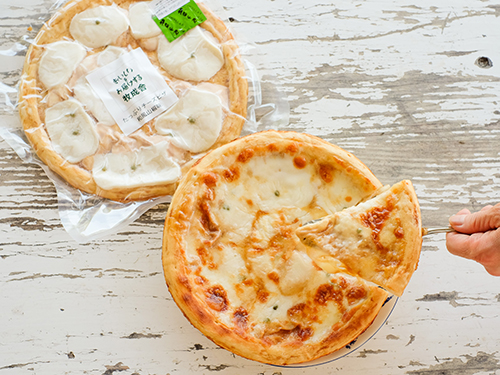 「30年以上前、現社長の牧田礼子が有名百貨店にアイスクリーム企画を提案し、飛騨をイメージできる和風のもなかアイスを共同開発しました。特製の焼き型で最中の皮を焼き、たっぷりとアイスクリームを入れたもなかアイスは、当社の手作り製法だからこそできる逸品です。近年は、チーズをふんだんにトッピングした『たっぷりチーズピザ』が人気です。中でも、当社の『チーズのたまり醤油(しょうゆ)漬け』と飛騨さんしょうを使った『和風山椒(さんしょう)味ピザ』は、特徴的な商品です。”チーズ屋がチーズにこだわったピザ”ということで、テレビなどで大きく紹介されました」