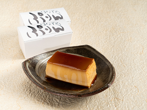 「プリンは甘党の店主が好きなのと、うどん屋の食事のデザートとして食べやすいのではと思い、お座敷の横の小さな厨房で作り始めました。コース料理の女子会メニューで大人数のとき、ホールプリンを提供したところ、『おいしいからコースじゃないときも食べたい』との声がありました。そこで、大きな容器で焼いて切り分けたものを提供すると、今度は『持ち帰りたい』との声をいただき、現在の商品になりました。脱プラスチックが進む中、紙製容器は気に入っていますが、手作業でフィルムに包むため時間がかかり、新たな容器を探しています」