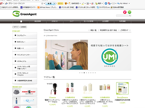 海外製品の輸入を行うグリーンエージェント(本社埼玉県、神田喜暢社長)は10年にECサイト「GreenAgent Store(グリーンエージェントストア)」を開設した=写真。