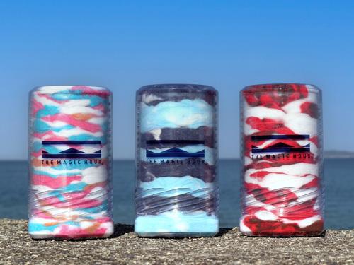 「当社の主業務は染色加工ですので、染色加工を受けているお客さまとバッティングしないよう、みなさんが想像するフワッとした今治タオルではなく、機能加工などを備えた商品ラインアップになっています。マジックアワー立ち上げの理由も、染色加工のお客さまと被らないものはないかと考えていた時、私の趣味でもあるアウトドアのブランドを立ち上げようと思いました。『今治のホコリ』は、本来破棄していたタオル乾燥機の綿ぼこりを流用した火起こしの着火剤です。昨春、キャンプ雑誌で紹介していただき、その後いろいろなメディアでも紹介されたことで広まりました。サステナブルな商品であり、従来の着火剤にはないカラフルさが人気の理由だと思います」
