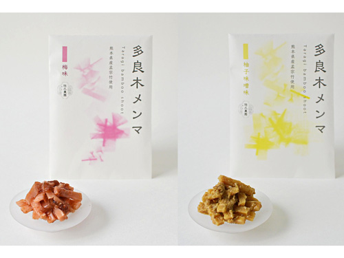「福岡県糸島市の地域団体が、竹になる前に幼竹(ようちく=育ちすぎたタケノコ)の状態で採取し、メンマに加工することで竹林が荒れるのを防いでいると知りました。幼竹はのこぎりでササっと採取でき、竹に成長したものを伐採するのと同じ効果が省労力で得られる。これこそがきれいにした竹林を維持する最も効率のいい方法だと思い、メンマ作りに至りました。メンマの味付けや売り方などに悩んでいた時、放置竹林を解決するために生まれた『延岡メンマ』を製造販売するLOCAL BAMBOO株式会社の江原さんを紹介していただき、お話を聞いて、多良木メンマの監修をお願いしました。こだわったのは、『おにぎりに合う味』と、『できるだけ地元産の材料を使うこと』。試行錯誤し、試作品を食べて”これはおにぎりに合う”と思えたものが多良木メンマです」