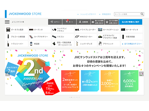 JVCケンウッド公式ならではの安心感と、お得な商品を提供しています。ニッパーの日やJVCケンウッドの日など、さまざまキャンペーンを実施しています。もうすぐリニューアルしてから2周年のため、さらにメーカーならではのキャンペーンを企画しているとのことです。