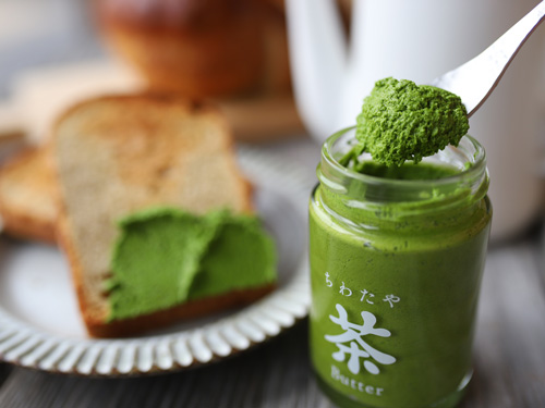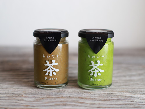 「もともと農薬不使用小麦や無添加などにこだわって自家製酵母でパン作りをしていました。東彼杵町に来て、せっかくならこの町の特産品のお茶を生かした商品を作りたいと思い、『そのぎ茶』を使ったパン屋ならではのパンのおとも『ちわたや茶バター』を開発。お茶の味をしっかり味わえる配合や混ぜ具合に試行錯誤し、完成しました。初めは煎茶の粉末を使っていましたが、町に抹茶の原料となるてん茶工場ができたので、使う粉末を抹茶に変更しました。そのほか、グラスフェッドバターや有機アガベシロップ、天日塩など体にやさしい素材を使っています」