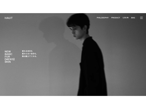 「HAUT(オウ)」は男性用オールインワン化粧水ブランド。スキンケアが初めての男性でも、バスルームや部屋に置いておきたくなるシンプルなタイポグラフィーのボトルデザインが特徴的だ。