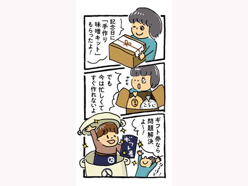 みそをご家庭で、手作りで作って食べていただく、というやや高めのハードルを、タテヨコ数センチに凝縮された、起・承・転・結のエリアに凝縮させる…。かつてマンガ家を目指し、審査員からは「あなたのマンガにはメクリがないね?」という一言に幼き頃の心を傷つけられた筆者には、「4コママンガ」作りの苦労は身にしみるところです。