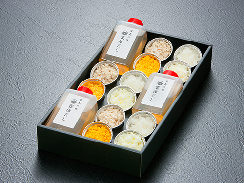 「『鯛めし』は、江戸時代、松江藩7代藩主・松平不昧公がお気に召されたという説をもとに当館初代料理長が考案し、代々受け継がれている料理です。タイのそぼろは国産タイの上身(刺身にする部分)を使用。秘伝のだしはあっさりとしてもたれない、カツオの本節をベースに、松江のしょうゆを使っています。4年前、『鯛めし』をご家庭でも楽しんでいただけるよう、冷凍でお届けできる商品を開発しました。また、『鯛めし』のだしを買いたいというお客さまの声をヒントに、料亭皆美のだしを考案。現在、『鯛のだし』『あごのだし』『こんぶだし』の3種類を販売しています」