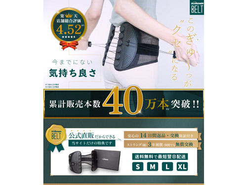 公式サイトと言ってもガードナーベルトだけを販売する縦長のランディングページ(LP)。最初に飛び込んでくるのは、