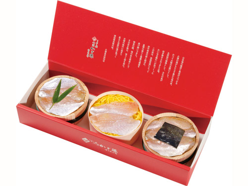 「地元出身の方が折々のごあいさつの品に、地元以外の方もおめでたい鯛の品としてお祝いことにご利用いただくことが多いです。定番は小鯛の笹漬けですが、近年の個食化傾向もあって、異なる種類の笹漬け、昆布締めなどを少しずつ食べ比べする方が増えています。季節限定品(夏は鮎やキスの笹漬け)や、ネット限定で笹漬けと笹漬けを使ったおすしのセットなども販売しています」