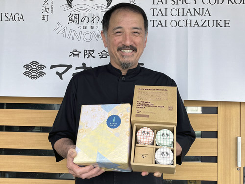 玄界灘を臨む佐賀県玄海町の仮屋湾は、リアス式の地形を生かした好漁場で、真鯛の養殖が盛んに行われている。この地で鯛をはじめとする加工品の製造販売を行うマキハラでは、コロナ禍を機に新商品開発に取り組み、養殖真鯛を使ったごはんのお供「鯛のわん」を発売。メディアの紹介で注目され、人気のお取り寄せ商品となっている。こだわりや反響などについて、牧原斉社長に聞いた。