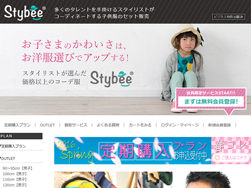 広告制作やシステム開発のカタボー(本社東京都、小嶺順義社長)は、プロのスタイリストがコーディネートした子ども服を販売するECサイト「Stybee(スタイビー)」を14年9月に開設した=写真。