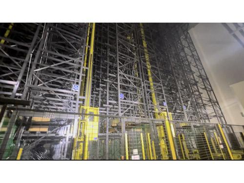 庫内の1階は入出庫や検品エリアで、垂直搬送機で荷物を載せたパレットが2階へ運ばれる。運搬された荷物は保管ラックやスタッカーレーンで管理される。2階エリアは従来ある各階の床をなくし、吹き抜け構造にして4190パレットを保管・管理できる。