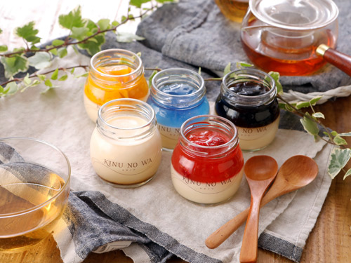 「キヌノワスイーツの味わいの決め手は、千葉県袖ケ浦市のブランド卵『ぷりんセス・エッグ』で、若鶏から生まれた新鮮で弾力のある卵です。プリンは熟練の職人が手でこしており、極上の滑らかさです。また、プリンの上のカラフルなジュレは、季節のフルーツや自家焙煎のコーヒー、ハーブなど、すべて天然色素のきれいな色でできています。『見栄えがいいのでプレゼントしたら、とても喜ばれた』という声を多くいただきます」