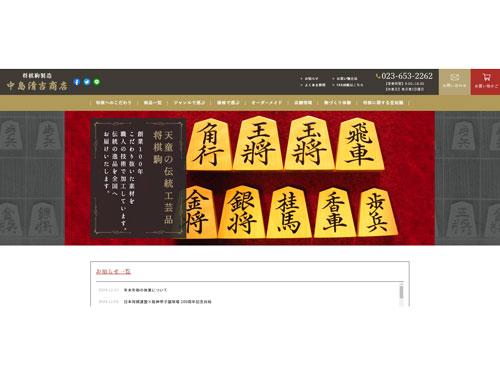 「中島清吉商店」は、将棋愛好家のための専門ECサイトであり、伝統と美を追求した商品ラインアップが魅力です。トップページには駒や盤の写真が大きく配置されており、高級感のある赤と金のデザインと、美しく磨かれた駒が印象的です。加えて「創業100年」の記載により、「このサイトで買えば間違いない」と直感的に感じられます。