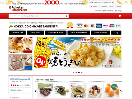 同社は新千歳空港のターミナルビルに、「白い恋人」や「ロイズ」といった北海道の銘菓を販売するショップを出店している。00年に通販サイトを開設し、中国人観光客が増え始めた10年から楽天グローバルに出店した。越境ECを始めたのは、スタッフの「越境ECをやってみよう」という一言だったという。