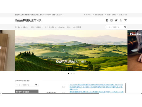 1932年創業、東京・蔵前で革の卸を手がけてきた川村通商が運営する「KAWAMURA LEATHER(カワムラレザー)」。オンラインでも、一般には手に入りにくい高品質なイタリアンレザーを1枚から購入できる点がユニークです。