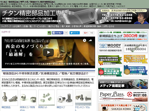 チタンやマグネシウムなど「難削材」と呼ばれる軽金属の精密部品を製造する福井県鯖江市の西村金属。地場産業のメガネ部品が海外勢に押されて厳しい経営環境にあった中、現常務の西村昭宏氏が主任だった03年にホームページ(HP)を立ち上げた。