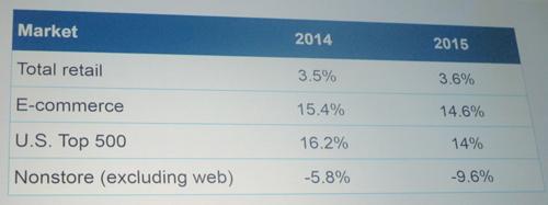 15年の米国EC市場規模は前年比14.6%増の約36兆円でした。14年は前年比15.4%増でしたから、ほぼ同水準で成長している状況です。小売全体の市場成長率3.6%増と比べると高水準で推移しているといえます。