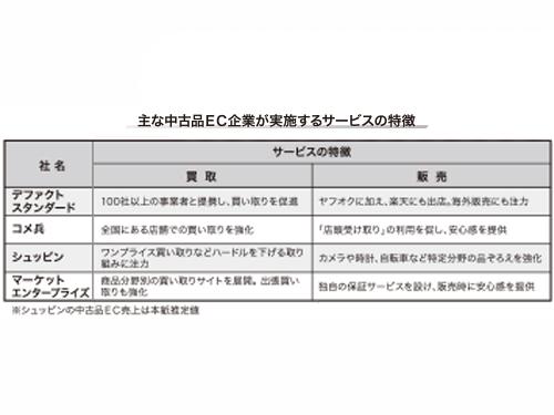 本紙がまとめた中古品EC売上高ランキング(2014年調査)によると、上位30社の売上高の合計は前年比21・8%増の561億1200万円だった。EC市場と中古品市場はそれぞれ拡大しており、中古品ECの有力企業は順調に業績を伸ばしている。中古品EC大手はネットの不安を取り除くためにサービスに工夫を凝らしている。大手が実施している買い取り販売のノウハウを紹介する。