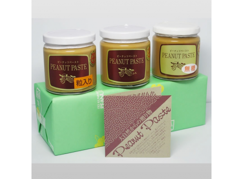 「最初は大きなチョッパーで粗砕きし、それを黒御影石でひいていきます。この時点で香りが立ち、細かくコシの強いペーストが出来上がり、その後時間をかけて練り上げます。昭和55年の発売当初は100%ピーナッツペースト無糖のみ、料理用として販売していましたが、現在は加糖や粒入り商品も販売しています。いずれもピーナッツ本来の味を損なわないよう、砂糖、食塩、植物油脂などはごく少量の添加で作っています」