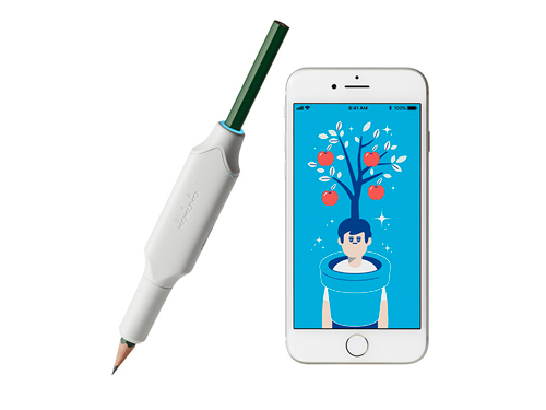使い方は、市販の鉛筆に取り付け、専用のアプリと連動させる。勉強するほど、アプリ内の「やる気の木」が育つ仕組みで、勉強への取り組みを見える化させた。