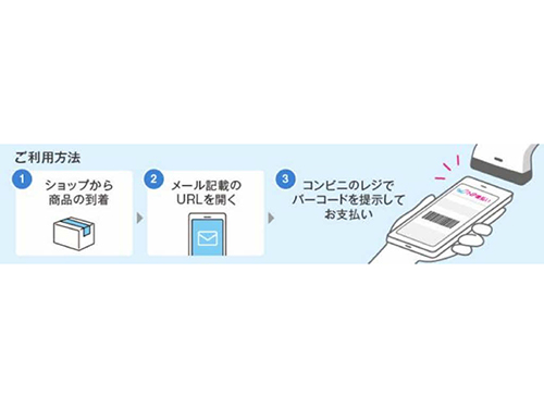 新機能は、購入者のスマホなどにバーコードへアクセス可能なURLが記載されたメールを届ける。コンビニのレジでそのバーコードを提示して代金を支払う流れだ。