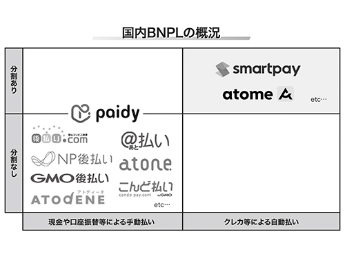 国内で事業展開するBNPLは、商品が到着した後、コンビニなどで現金で一括払いするのが一般的。一方、海外系のBNPLは3回払いなど複数回の支払いを可能にしているのが特徴だ。また、クレジットカード保有者に対してアプローチできることから国内BNPLとは競合しないとみている。今年に入り、外資系を含めたBNPLが国内で事業を始めている。